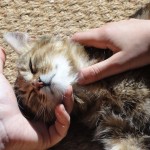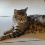 Les animaux domestiques. Qui en a? Nous en avions 2, un lapin et un cochon d’inde. Et voila qu’il y a 1 mois, une petite chatte sauvage s’est mise à roder autour de la maison. Elle n’a pas mis très longtemps à nous accepter. Il faut dire que nous avions mis les chances de notre coté. Le premier jour que nous l’avons aperçu, alors que nous installions le clapier du lapin dans le jardin, elle est venu nous voir. Elle était très maigre… On lui a donné quelques restes qu’elle a rapidement fait disparaitre. Ensuite, elle est venu nous voir régulièrement. Puis, petit à petit, elle a fini par rentrer chez nous. Comme il y a pas mal de chat errant dans le coin, nous l’avons fait stériliser 🙁 . Mais cette mésaventure n’a pas changé son comportement. Elle est toujours voir plus câline qu’au début. Elle ronronne tout le temps. Maintenant elle fait parti de la famille, elle a pris ses aises mais elle passe ses journée dehors. Mais lorsqu’elle rentre, c’est pour trouver des caresses…